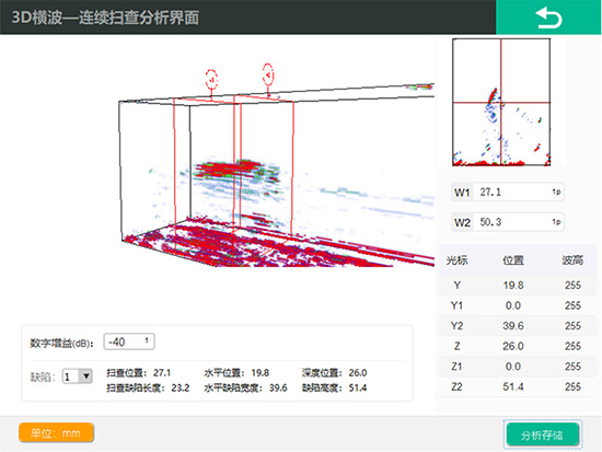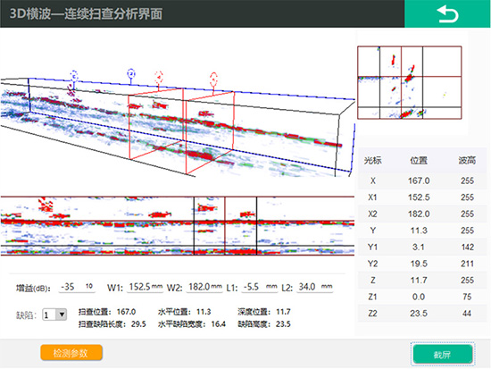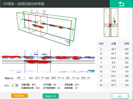 采用实时3D全聚焦检测系统,配合管道检测专用链式扫查器进行连续扫查。从3D连续扫查图像中,可轻易判别管道环焊缝是否存在缺陷。进一步在线分析,结合自定义焊缝模型,可快速实现缺陷的定位和性质判断。