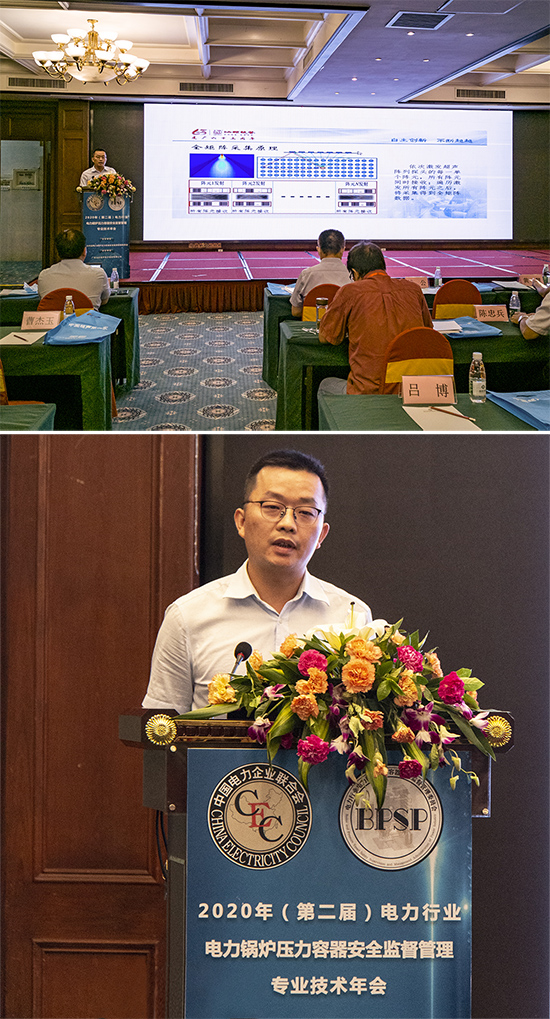 行业知名专家做了多场高水平学术专题报告,可谓是“百花齐放、百舸争流、异彩纷呈”。我司项目经理杨贵德先生作《超声相控阵实时三维全聚焦(3D-TFM)成像检测技术及应用》的专题报告,分享最新研究成果和检测应用实例。