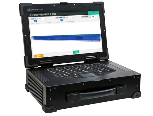 今年隆重推出便携式相控阵全聚焦实时3D超声成像系统CTS-PA322T,该系统是我司自主研发的一款新型64通道全并行的相控阵全聚焦(TFM)实时超声成像检测系统。系统实时采集材料内部的全矩阵(FMC)数据,并利用基于信号处理芯片的高速硬件成像技术,实现对金属以及非金属材料的高精度实时相控阵2D/3D全聚焦(TFM)成像检测。首创工业相控阵RF 射频元数据平台,可直接对完整的原始数据进行计算机处理。