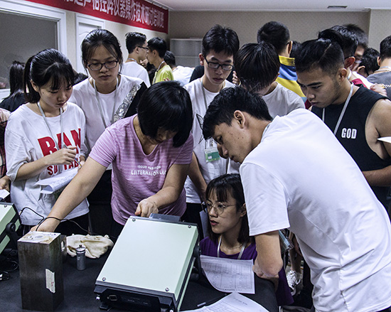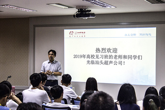 2019年7月2日-7月18日,北京理工大学珠海学院和南昌航空大学的无损检测专业学生来在各校老师的带领下,分批到汕头超声实习,汕头超声仪器分公司总经理助理许培杰代表公司在开班仪式上致欢迎词,对实习班的老师和同学们表示热烈的欢迎,并向大家介绍公司的发展史及行业动态。