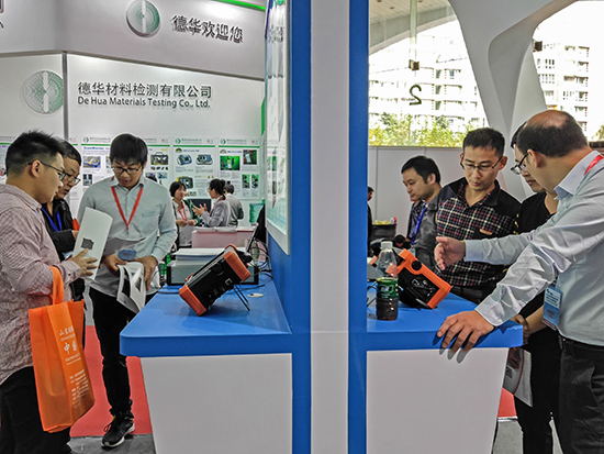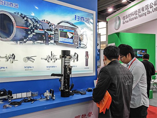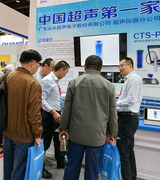 新一代相控阵超声检测仪CTS-PA22B受到关注,参展同事正在对来访者做介绍