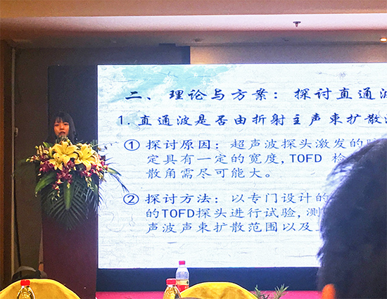 我司员工薛梦儿就“TOFD技术的直通波成因研究”做报告