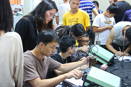 实习期间,汕头超声仪器公司将安排经验丰富的工程师为实习生进行授课,从模拟超声探伤仪、数字超声探伤仪、换能器(探头)的工作原理、指标测试、简单应用,到最前沿技术和应用的相控阵全聚焦实时3D超声成像系统和相控阵探头都将做介绍和操作,让同学们能结合书本的知识,了解及掌握超声探伤技术和应用。