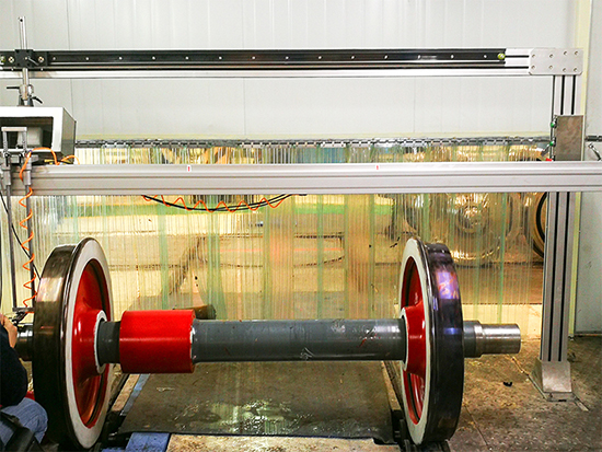 本系统是我司合作单位为中车某车辆厂定制开发的一套火车轮轴检测系统,采用超声相控阵技术,实现了对车轴卸荷槽、轮座、齿轮箱座等部位的全覆盖检测。为满足现场使用的需要,本系统设计为简便、可移动的半自动检测系统,可将探伤架移动到轮对所在位置进行探伤。