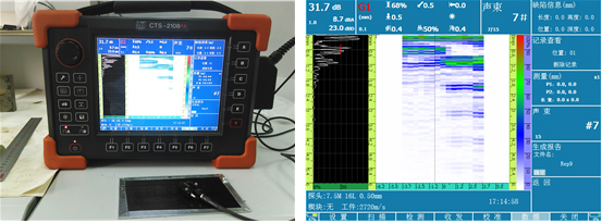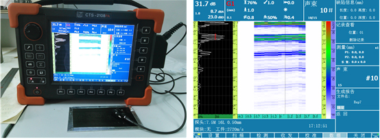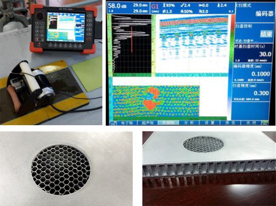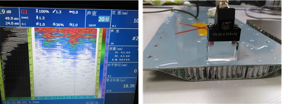 采用10MHz的高频率窄脉冲探头,能够实现只有零点几毫米厚的铝蜂窝复合材