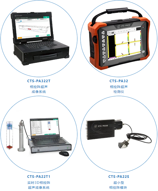 更有得到市场认可的多组实时4DTFM和TOFD同步扫查功能的相控阵超声成像系统CTS-PA322T、3D 全聚焦技术和多维度成像的便携式相控阵超声检测仪CTS-PA32、支持二次开发并且可实现网络数据传输和控制的实时3D相控阵超声成像系统CTS-PA22T1、支持OEM定制和多模块级联高速并行通道的超小型相控阵模块CTS-PA22S等也同步亮相。