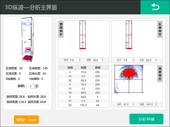 ●Based on the two-dimensional array probe in three-dimensional space the defect information of the detected workpiece is collected from different spatial angles. The information collection is more sufficient the internal defects of the bolt are in a clear view the image is intuitive and reliable and the defect omission is avoided.
